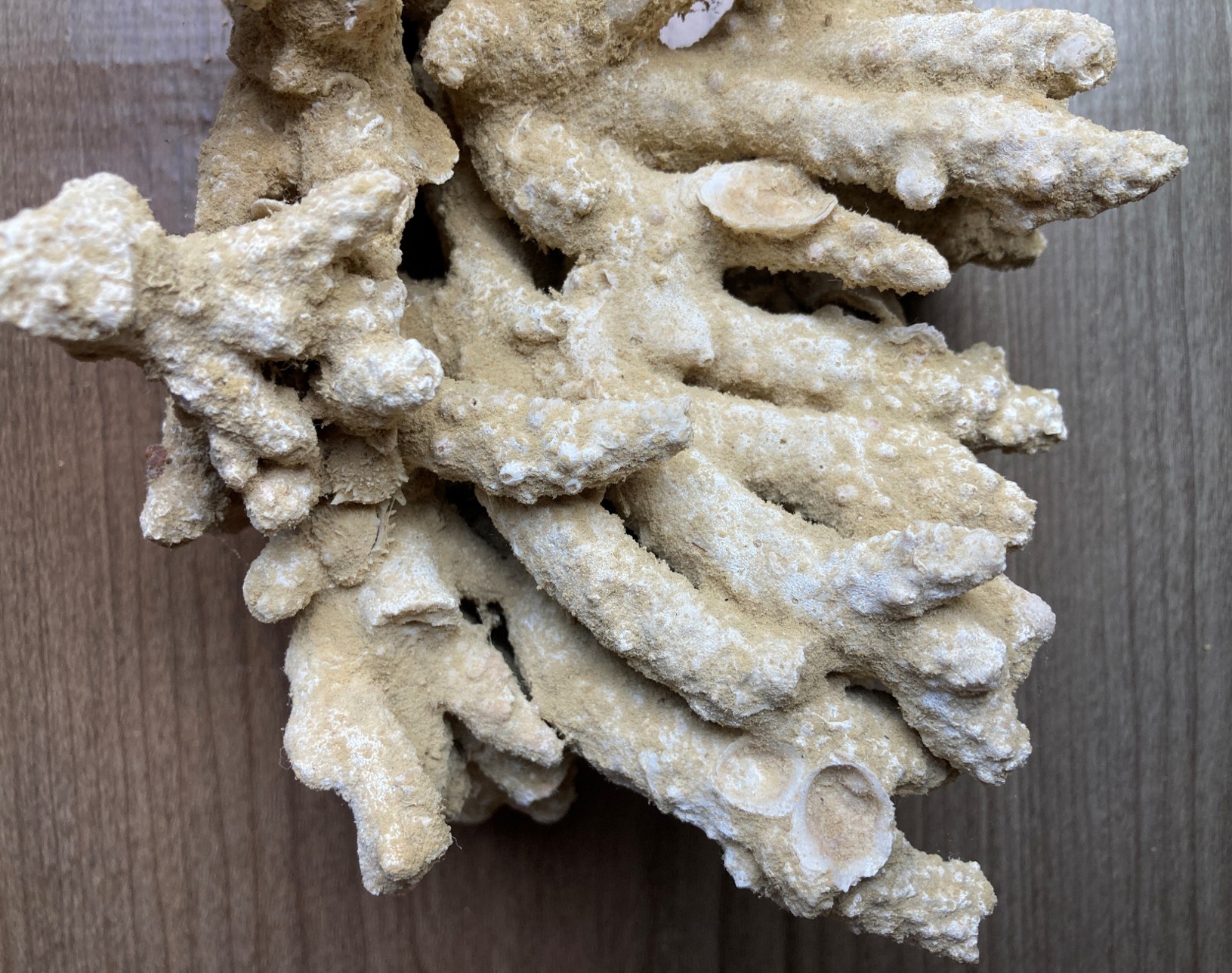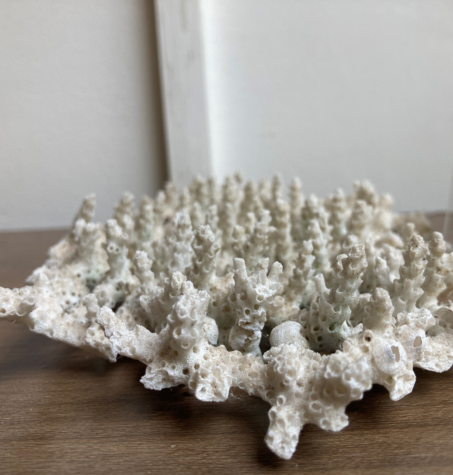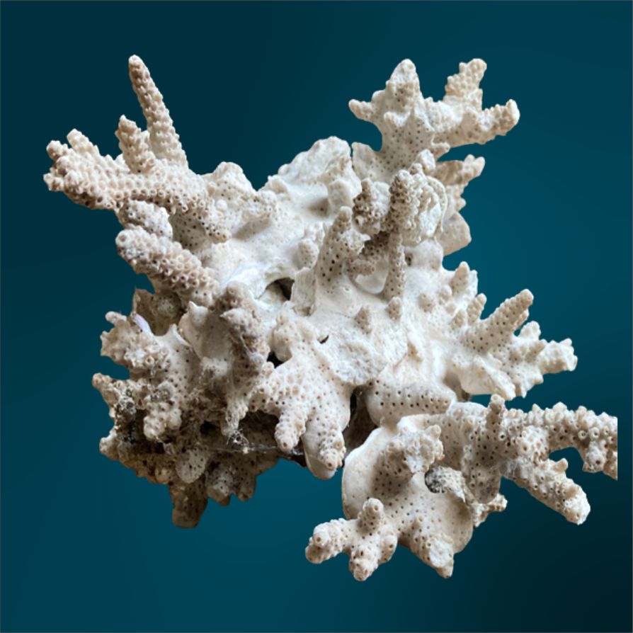 The colonies exhibit diverse shapes, ranging from branching “staghorn” forms to flat-topped “table” structures. Their branches are generally cylindrical and covered with tiny skeletal cups called corallites, each about 0.5 cm in diameter. A distinctive feature is the axial corallite, a larger central corallite located at the tip of each branch, responsible for upward growth. New corallites continuously bud along the sides, allowing the coral to expand.